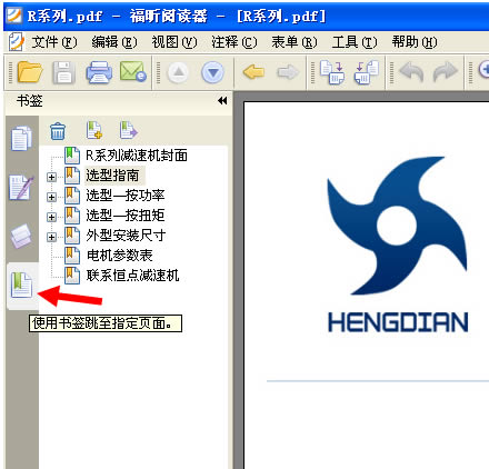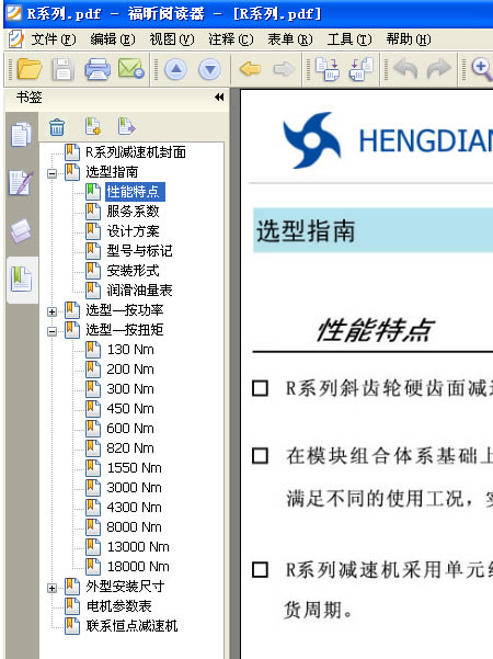 4: 打開一個PDF文件後,本例以打開 恒點傳動公司的R系列産品爲示範,看下軟件的左上角 ,如下圖 :