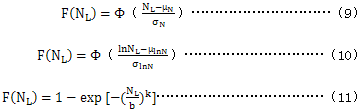 9.3在未知試驗齒輪的壽命分布函數時,一般採用正态分布,對數正态分布或二參數威布爾分布進行分布檢驗,確定分布類型,三種分布函數分别爲 :