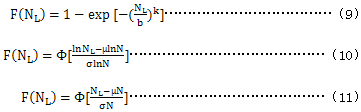 9.2在未知試驗齒輪的壽命分布函數時,一般採用二參數威布爾分布、對數正态分布或正态分布進行分布檢驗,確定分布類型。三種分布函數分别爲: