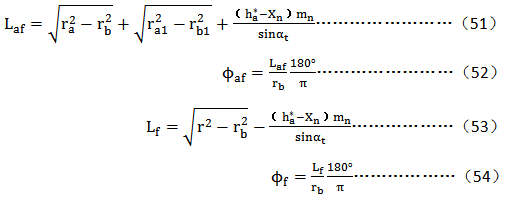 式中:ξ和ξ——齒頂點和齒根起始檢驗點的徑向直線與Y軸的夾角 ,(°)