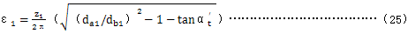 表中:ε1、ε2——小輪、大輪的齒頂重合度,由公式(25)及(26)確定;