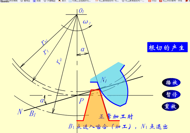 在加工過程中 ,刀具的齒(chǐ)頂會越過被加工齒(chǐ)輪的基圓與齧合線的極限切點(diǎn)。