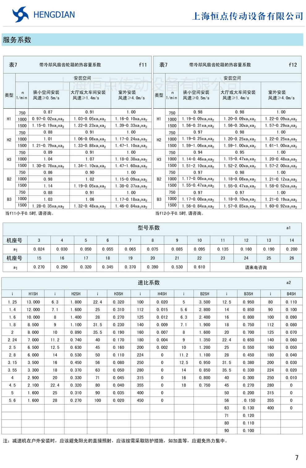 7 - 輸出軸允許的附加徑向力 8 - H系列傳動能力表