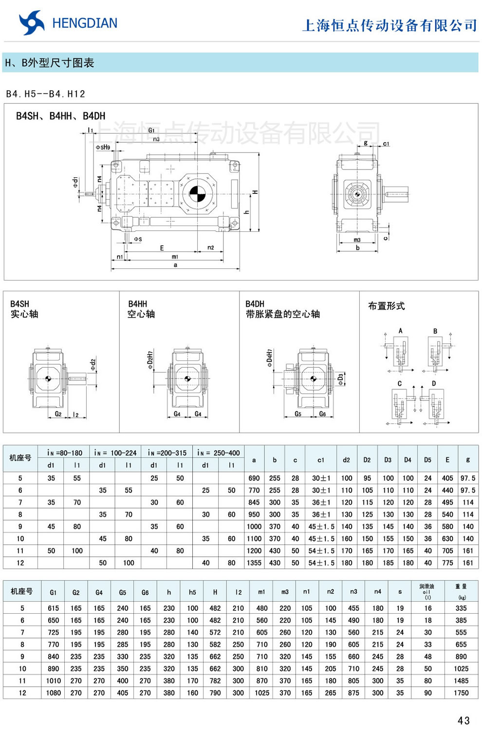 13 - HB系列外形尺寸(2) 14 - HB系列軸布置形式