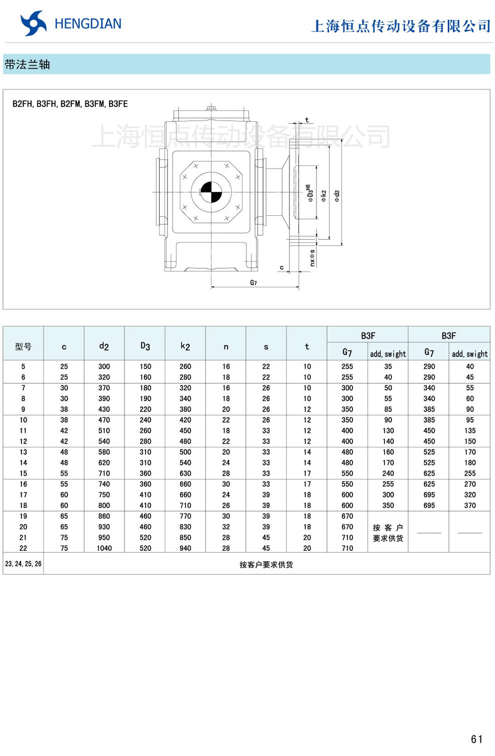 帶法蘭軸尺寸 - HB标準工業齒輪箱